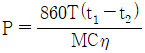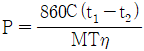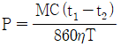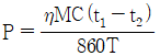 금형온도에서 제어시스템 중 금혈 가열 히터의 용량을 구하는 공식으로 옳은 것은? (단, P : 히터용량(kW), t1 : 상승희망온도(℃), t2 : 대기의 온도(℃), M : 제어부의 금형중량(kg), T : 희망상승시간(h), C : 금형재료의 비열, η : 히터 효율(%)이다.)