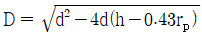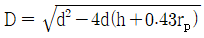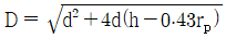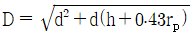 드로잉작업에서 코너 R이 있는 원통용기를 드로잉할 때 필요한 블랭크 직경을 구하는 식은? (단, D : 블랭크 직경, d : 드로잉 직경, h : 드로잉 깊이, rp : 펀치 코너 반경이다.)