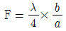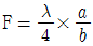 광선 정반으로 평면도를 측정하고자 할 때 평면도 F를 구하는 공식은? (단, 이웃하는 간석무늬의 중심거리를 a, 간석무늬의 굽은 양 b, 사용하는 빛의 파장은 λ이다.)