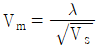 기하학적으로 상사한 모형선과 실선의 속도가 각각 Vm, Vs 이고 축척비가 λ 일 때, 2차원 Froude 저항 추정법에서 대응속도에 해당하는 것으로 가장 옳은 것은? (단, 축척비 λ = 실선 길이/모형선 길이 이다.)