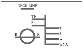 선박의 만재흘수선표시는 선박의 좌·우현 양쪽의 외판상에 표시를 하게 되는데 <보기>에 대한 설명으로 가장 옳은 것은?