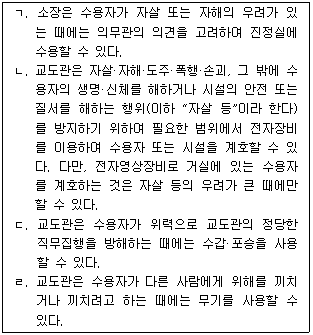 「형의 집행 및 수용자의 처우에 관한 법률」상 안전과 질서에 대한 설명으로 옳은 것만을 모두 고르면?