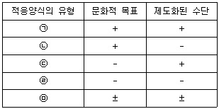 머튼(Merton)이 제시한 아노미 상황에서의 적응양식 중에서 기존 사회체제를 거부하는 혁명가(A)와 알코올 중독자(B)에 해당하는 유형을 옳게 짝지은 것은? (※ +는 수용, -는 거부, ±는 제3의 대안을 추구하는 것을 의미한다. 순서대로 A, B)