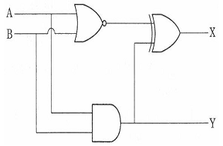 A=1, B=0 일 때 다음 논리회로 출력 X, Y 의 값은?