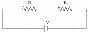 다음 회로에서 R1=10[Ω], R2=30[Ω], V=10{V]일 때 r1에 흐르는 전류는?