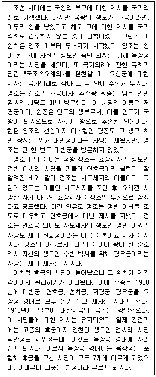 「국조속오례의」가 편찬될 때 대빈궁, 연호궁, 선희궁, 경우궁에 대한 제사가 국가의례에 처음 포함되었다.