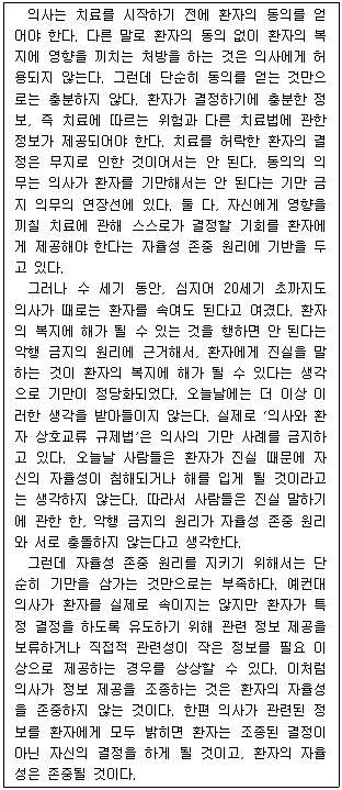 환자의 동의는 치료를 하기 위한 필요조건 중 하나이다.