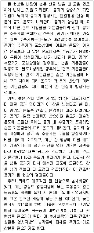 높새바람을 따라 이동한 공기 덩어리가 지닌 수증기량은 이동하기 전보다 증가한다.