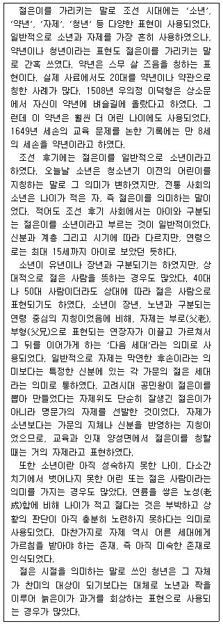 젊은이를 지시하는 말 중 청년이 가장 부정적으로 쓰였다.
