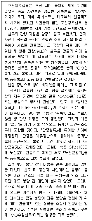 「광해군일기」는 세계 기록 유산으로 등재된 조선왕조실록에 포함되어 있지 않을 것이다.