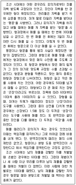 평과정에서 죄인이 자신의 죄를 순순히 자백하면 본형에 들어가지 않고 처벌을 면제하였다.