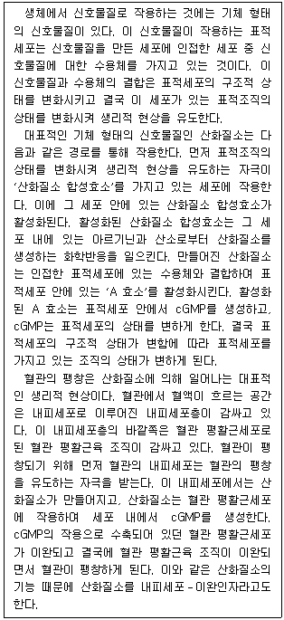 cGMP는 혈관 평활근육 조직의 상태를 변화시킨다.
