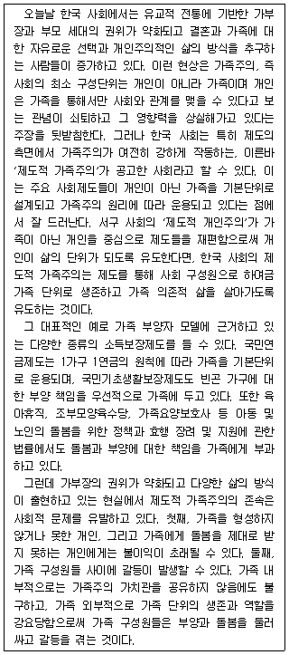 한국 사회에서 관념으로서의 가족주의는 약화되고 있으나 제도로서의 가족주의는 여전히 강하게 작동한다.