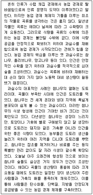 노동력 대비 생산량은 곡류보다 과실수가 많았다.