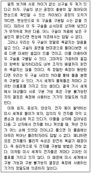 미시 세계에서 측정 기기의 정밀도가 향상될수록 구분 가능하다고 결정되는 대상들의 수는 감소한다.