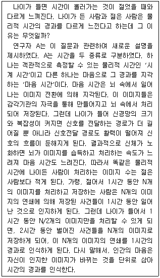 마음 시간과 시계 시간의 빠르기는 신체 노화에 따라 변한다.