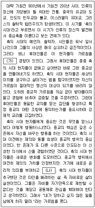 (나): 제의의 영역과 윤리의 영역을 엄격히 구분하였다