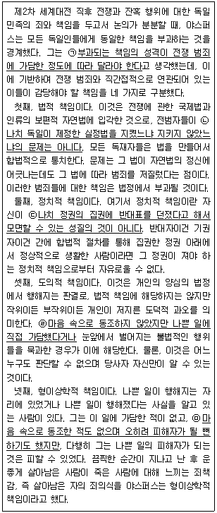 ㉡을 “나치 독일이 제정한 실정법을 지켰다면 면책될 수 있는 문제이다”로 고친다.