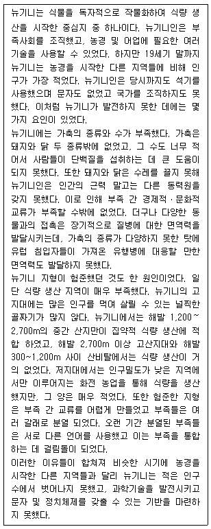 뉴기니의 인구는 가축을 기르기 시작하면서부터 증가하였다.