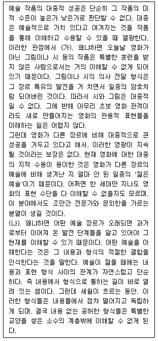 다음 글의 (가)와 (나)에 들어갈 말을 적절하게 나열한 것은?