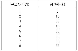 다음 표는 경쟁적인 생산물시장과 노동시장하에서 조업하는 어느 가상기업의 단기생산함수를 보인 것이다. 임금이 12,000원, 생산물의 가격이 2,000원이라면 이 기업은 몇 명의 근로자를 고용하려 하겠는가?