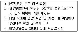 태양광발전시스템의 정전 시 운영조작 순서를 옳게 나열한 것은?