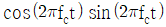 반송파 억압 양측파대(DSB-SC, double sideband-suppressed carrier) 방식으로 변조된 신호 m(t)cos(2πfct)를 복조하여 메시지 신호 m(t)를 얻었을 때, 복조 과정에서 사용된 반송파는? (단, m(t)의 주파수는 fc보다 매우 작고, 복조 시 통과대역의 이득이 1인 이상적인 저역통과필터를 사용한다)