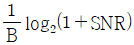대역폭이 B[Hz]인 AWGN 채널을 통해 수신된 신호의 신호대 잡음비를 이라고 할 때, 이 전송 채널을 통해 오류 없이 수신될 수 있는 섀넌(Shannon)의 최대 채널 용량[bps]은?