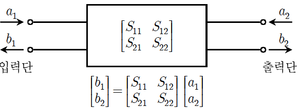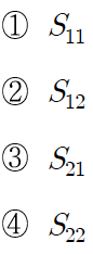 그림과 같은 산란계수(S-parameter)의 정의 중에서 입력에서 출력으로의 전송이득 또는 삽입손실의 특성을 나타낼 때 사용하는 것은?
