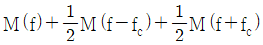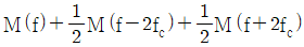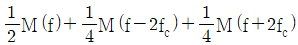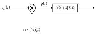 반송파 억압 양측파대(DSB-SC, double sideband-suppressed carrier) 방식으로 변조된 신호 sm(t)에 대한 복조기 구조가 그림과 같을 때, 곱셈기 출력 신호 y(t)의 스펙트럼 Y(f)는? (단, sm(t)=m(t)cos(2πfct)이고, 정보신호 m(t)의 푸리에 변환은 M(f)이다)