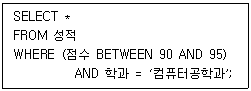 다음 SQL문에서 사용된 BETWEEN 연산의 의미와 동일한 것은?