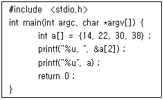 a[0]의 주소값이 10일 경우 다음 C언어 프로그램이 실행되었을 때의 결과는? (단, int 형의 크기는 4Byte로 가정한다.)