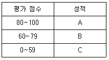 평가 점수에 따른 성적부여는 다음 표와 같다. 이를 구현한 소프트웨어를 경계값 분석 기법으로 테스트 하고자 할 때 다음 중 테스트 케이스의 입력 값으로 옳지 않은 것은?