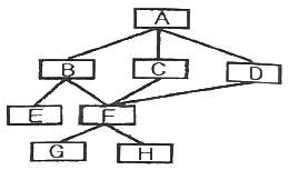 다음은 어떤 프로그램 구조를 나타낸다. 모듈 F에서의 fan-in과 fan-out의 수는 얼마인가?