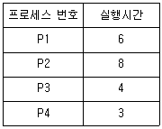 다음과 같은 프로세스가 차례로 큐에 도착하였을 때, SJF(Shortest Job First) 정책을 사용할 경우 가장 먼저 처리되는 작업은?