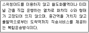 다음은 철도운송의 형태 중 무엇에 대한 설명인가?
