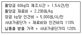 제조기구의 설치와 복잡한 공정을 거치는 제품은 외부로 부터 구매하는 것이 유리할 수도 있다. 아래와 같은 조건일 때 kg당 납품가격은 얼마 이하면 되는가?