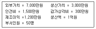 어느 제빵회사 A라인의 지난 달 생산실적이 다음과 같을 때 노동분배율은 얼마가 되겠는가?