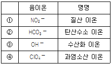다음 다원자 음이온에 대한 명명으로 옳지 않은 것은?