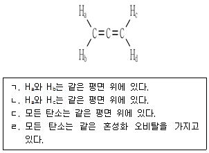 다음 알렌(allene) 분자에 대한 설명으로 옳은 것만을 모두 고르면?