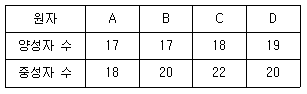 다음은 원자 A~D에 대한 양성자 수와 중성자 수를 나타낸다. 이에 대한 설명으로 옳은 것은? (단, A~D 는 임의의 원소기호이다)