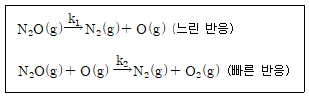 위의 메커니즘으로부터 얻어지는 전체반응식과 반응속도 법칙은?
