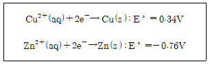 25℃ 표준상태에서 다음의 두 반쪽 반응으로 구성된 갈바니 전지의 표준 전위[V]는? (단, E°는 표준 환원 전위 값이다)