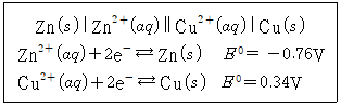 다니엘 전지의 전지식과, 이와 관련된 반응의 표준 환원 전위(E°)이다. Zn2+의 농도가 0.1M이고, Cu2+의 농도가 0.01M인 다니엘 전지의 기전력[V]에 가장 가까운 것은? (단, 온도는 25°C로 일정하다)