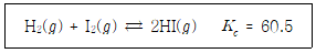 다음은 700K에서 H2(g)와 I2(g)가 반응하여 HI(g)가 생성되는 평형 반응식과 평형상수(Kc)이다. 평형상태에서 10L 반응기에 들어있는 H2(g)와 I2(g)의 몰수가 각각 1mol과 2mol일 때, HI(g)의 농도[M]는? (단, 기체는 이상기체이다)