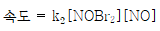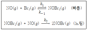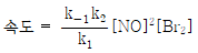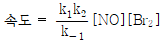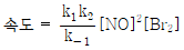 NO와 Br2로부터 NOBr이 만들어지는 반응 메커니즘이 다음과 같을 때, 전체 반응의 속도법칙은? (단, k1, k2, k-1은 속도 상수이다)
