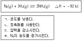 다음 반응에서 평형을 오른쪽으로 이동시킬 수 있는 방법으로 옳은 것만을 모두 고르면?