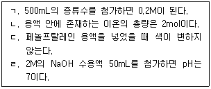 1M의 HCl 수용액 100mL에 대한 설명으로 옳은 것만을 모두 고르면? (단, 온도는 25°C이고, HCl과 NaOH는 물에서 완전히 해리된다)