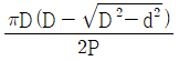 브리넬경도 시험(Brinell Hardness Test)값을 구하는 식으로 옳은 것은? (단, P = 하중, D = 강구의 지름, d = 압흔의 지름, h = 압흔의 깊이이다.)
