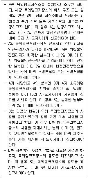 <보기>는 「위험물안전관리법」상 위험물 제조소등 설치자의 각종 신고 사례이다. '가~바'에 들어갈 수의 합으로 옳은 것은? (단, 주어진 상황외에 '미신고 대상'이나 '대리자' 지정 등 예외상황은 고려하지 않는다.)